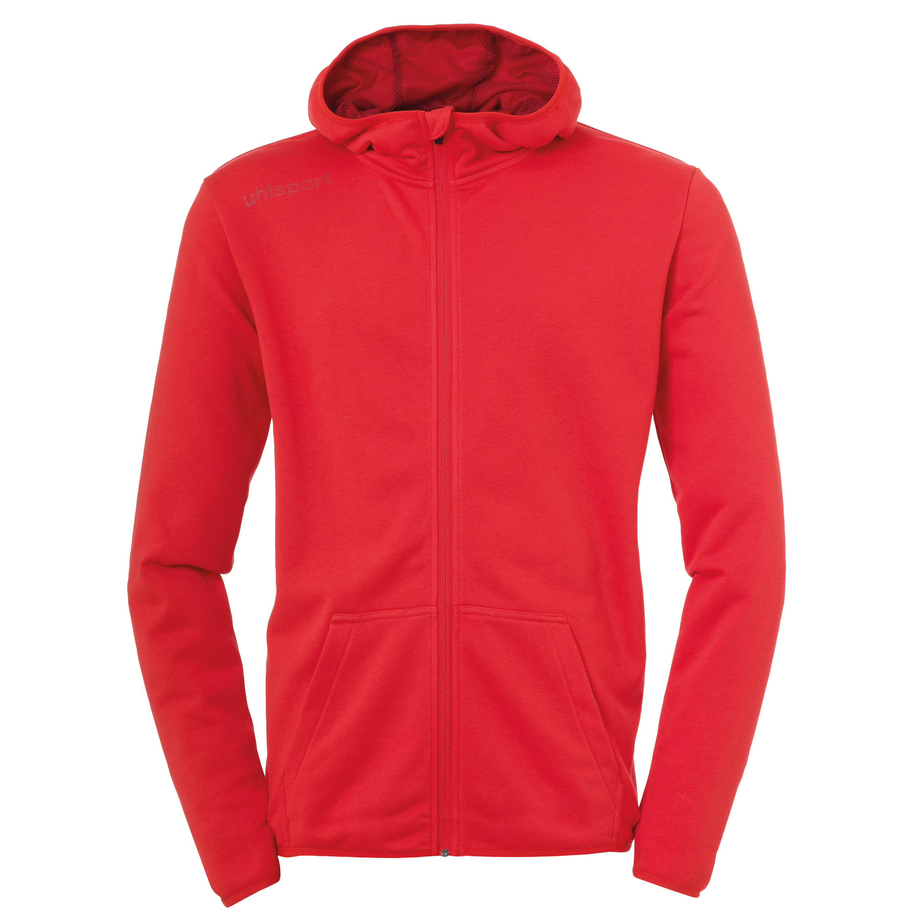 Logo uhlsport brodé sur la poitrine, doublure contrastée dans la capuche, veste de survêtement avec capuche. Poche kangourou sur le devant, matériel : 65% coton, 35% polyester.