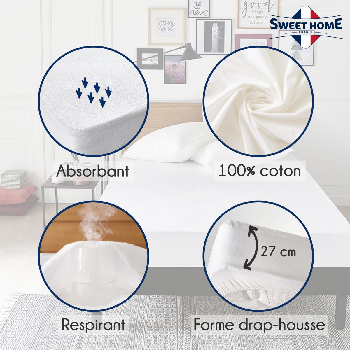 | Libellé | Sweethome - Protège matelas 160x200 cm | Anti Acariens | Molleton 100% coton | Silencieux et Respirant |