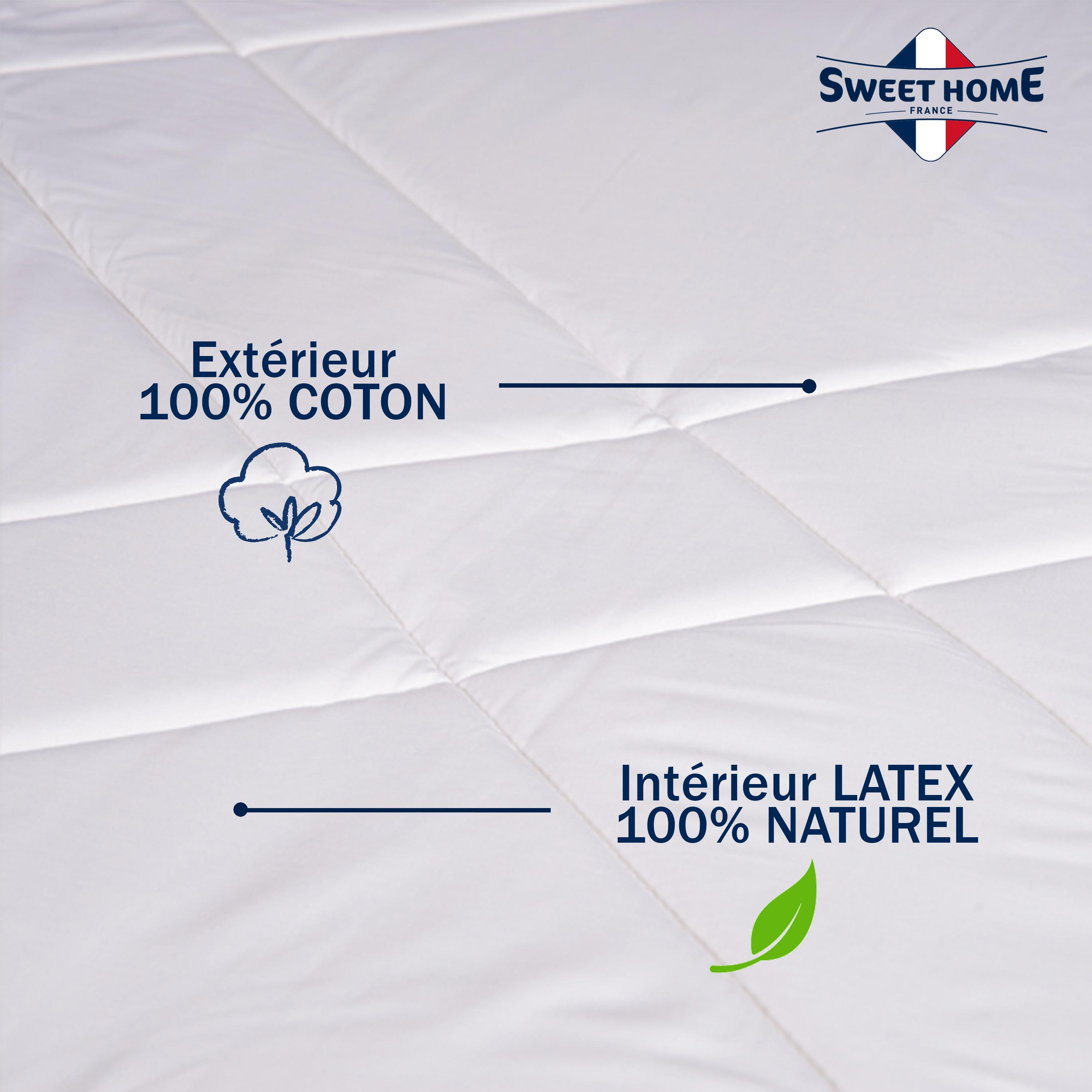 Sweethome - Surmatelas Latex 140x190/200 cm | Imperméable - Enveloppe 100% Coton - Latex Naturel - Forme