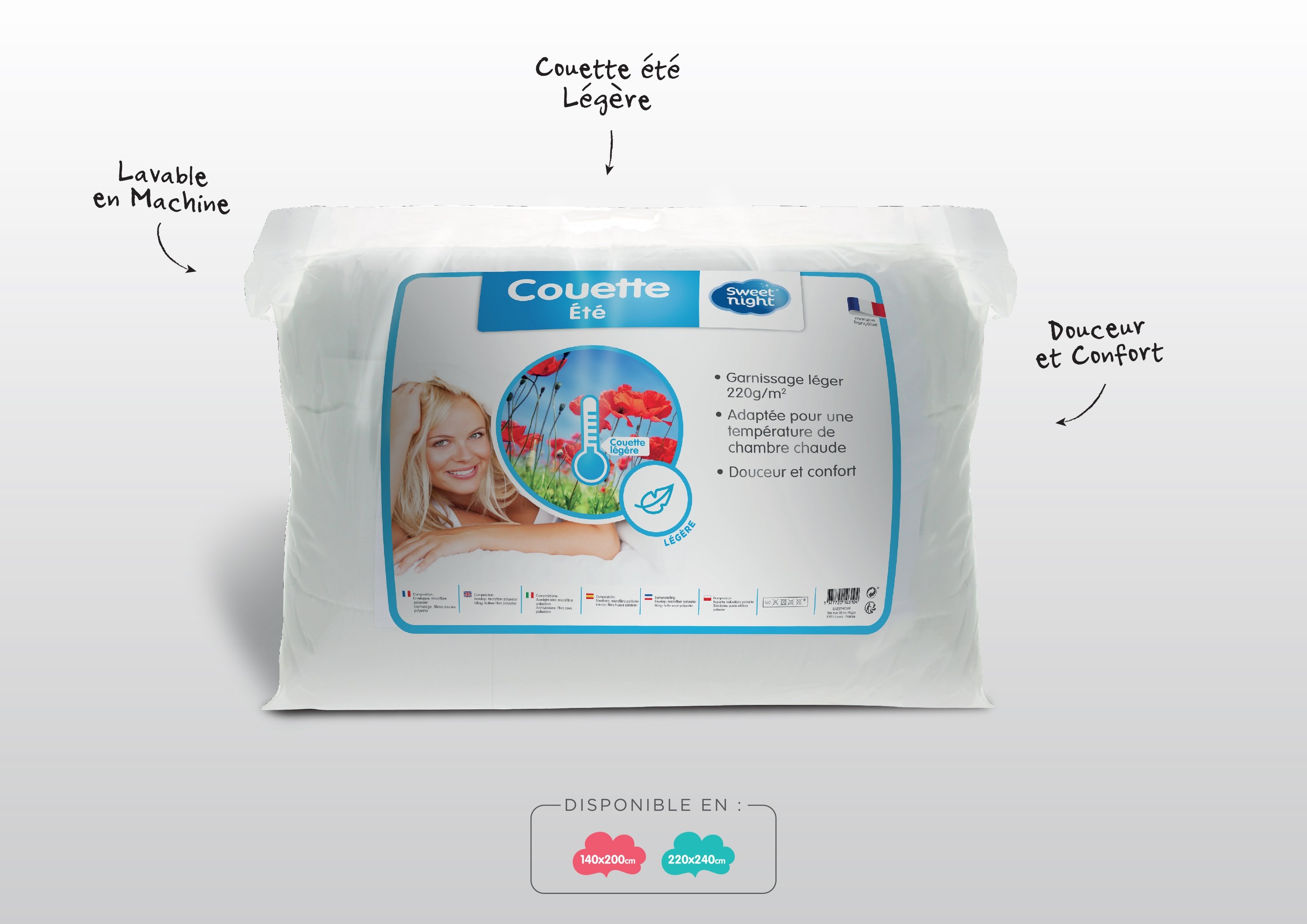 | Libellé | Sweetnight - Couette été 220g/m² | 140x200 | Fine et Légère | Douceur et Confort | Lavable | Enveloppe 100% Microfibre |
