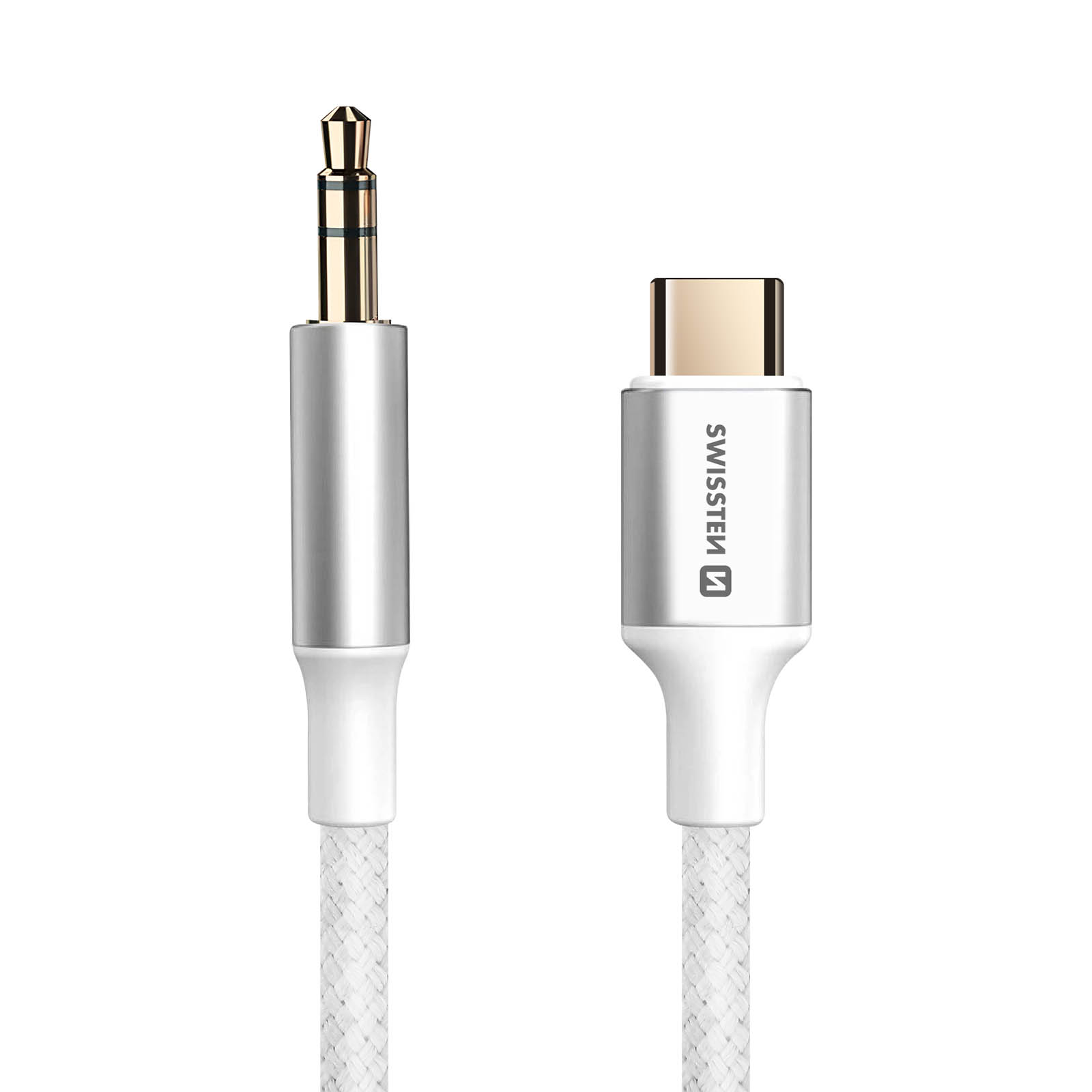 Swissten Câble auxiliaire audio USB C vers jack 3.5 mm Nylon Tressé 1.5m Blanc
