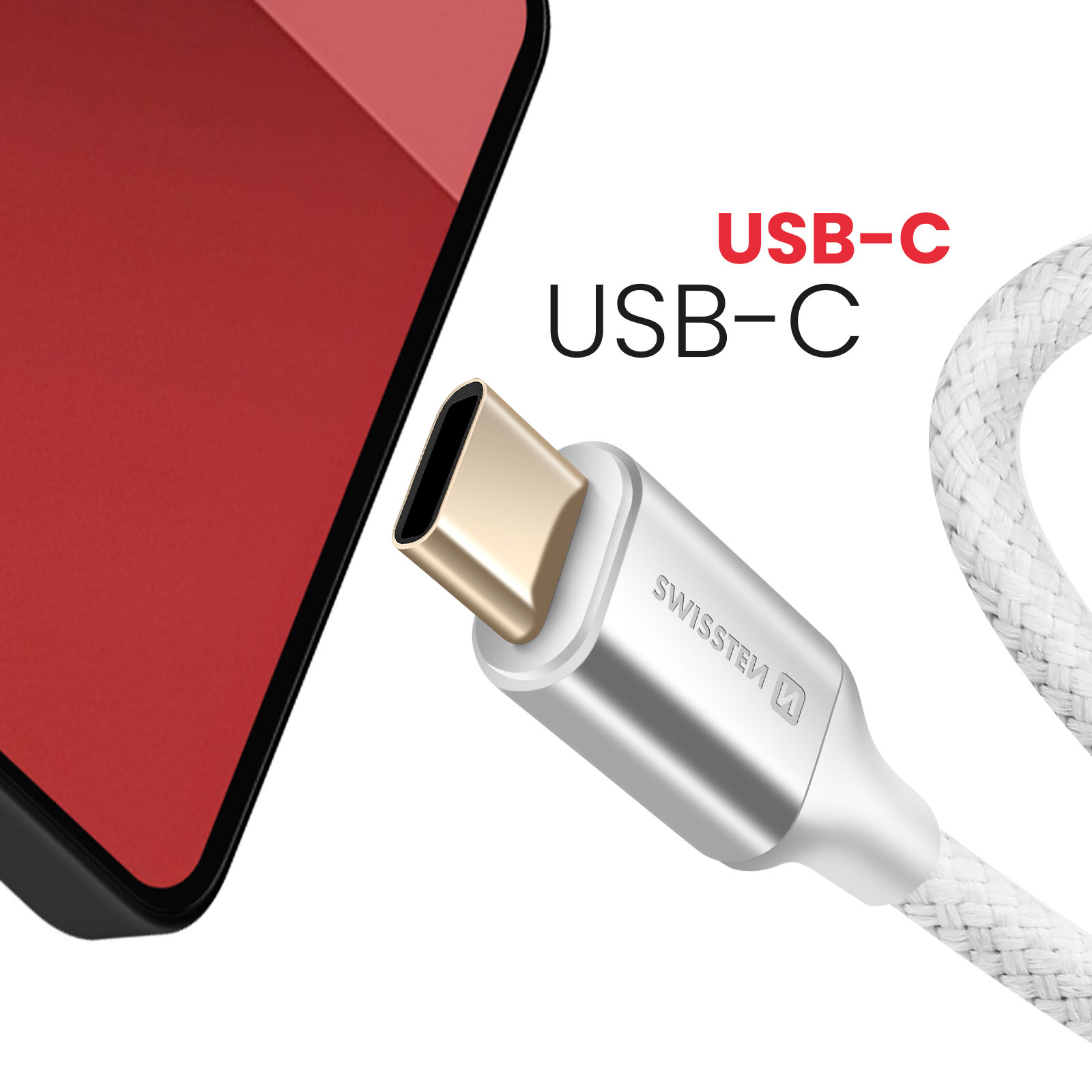 Câble audio auxiliaire USB-C vers jack 3.5 mm, Swissten. Nylon tressé anti nœuds. Son clair et stable. Idéal pour autoradio, ampli, enceinte ou casque audio avec entrée jack. Connecteurs solides. Usage voiture ou maison. Pour appareil compatible audio USB-C uniquement. Longueur 1.5m