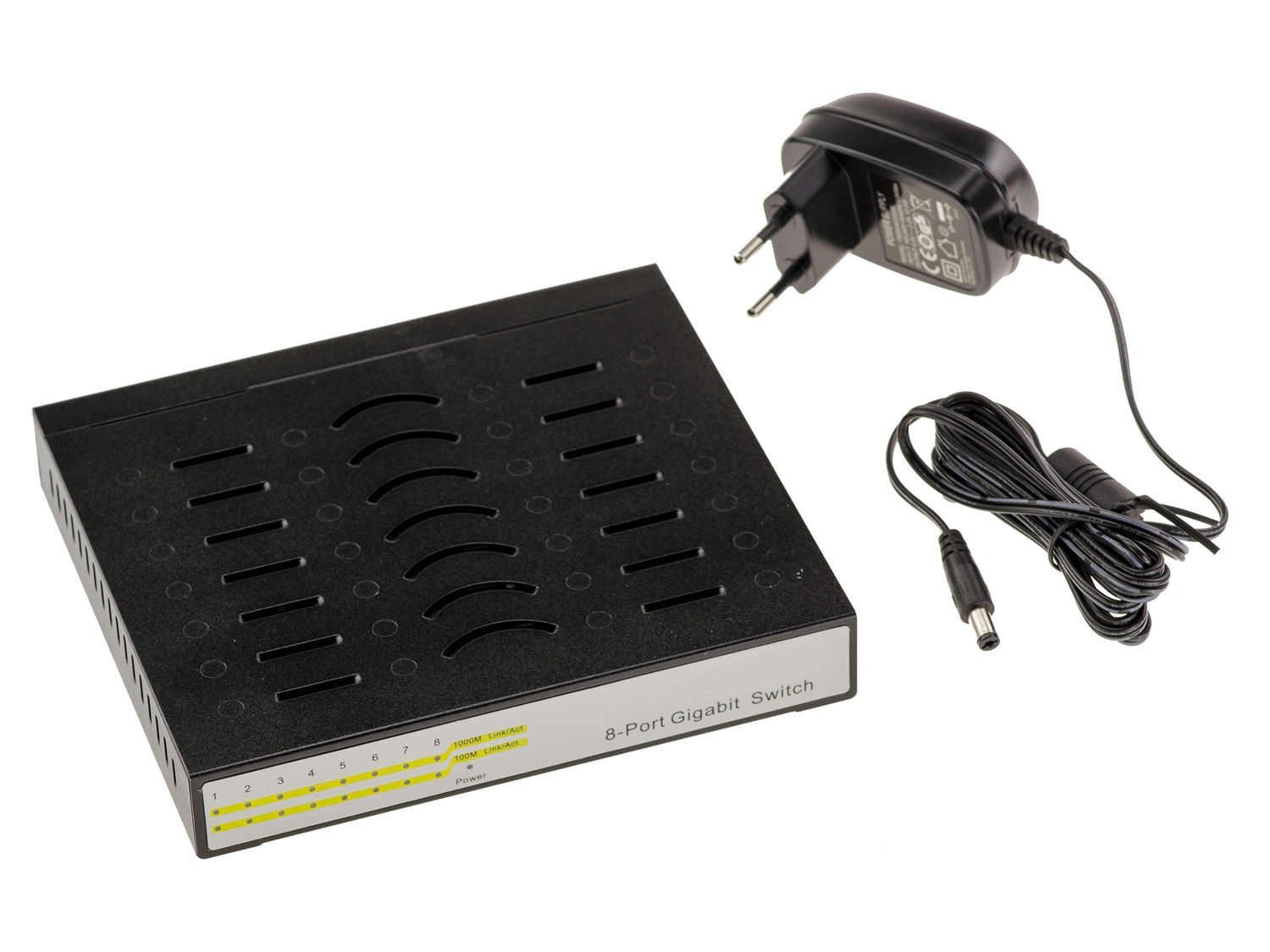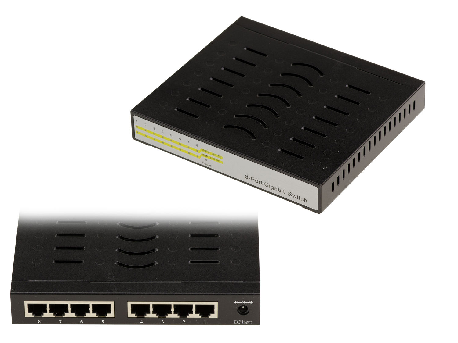 Switch Ethernet Lan Gigabit RJ45 10 100 1000 Mbps - 8 Ports, avec Alimentation externe. Boitier métal, Bu
