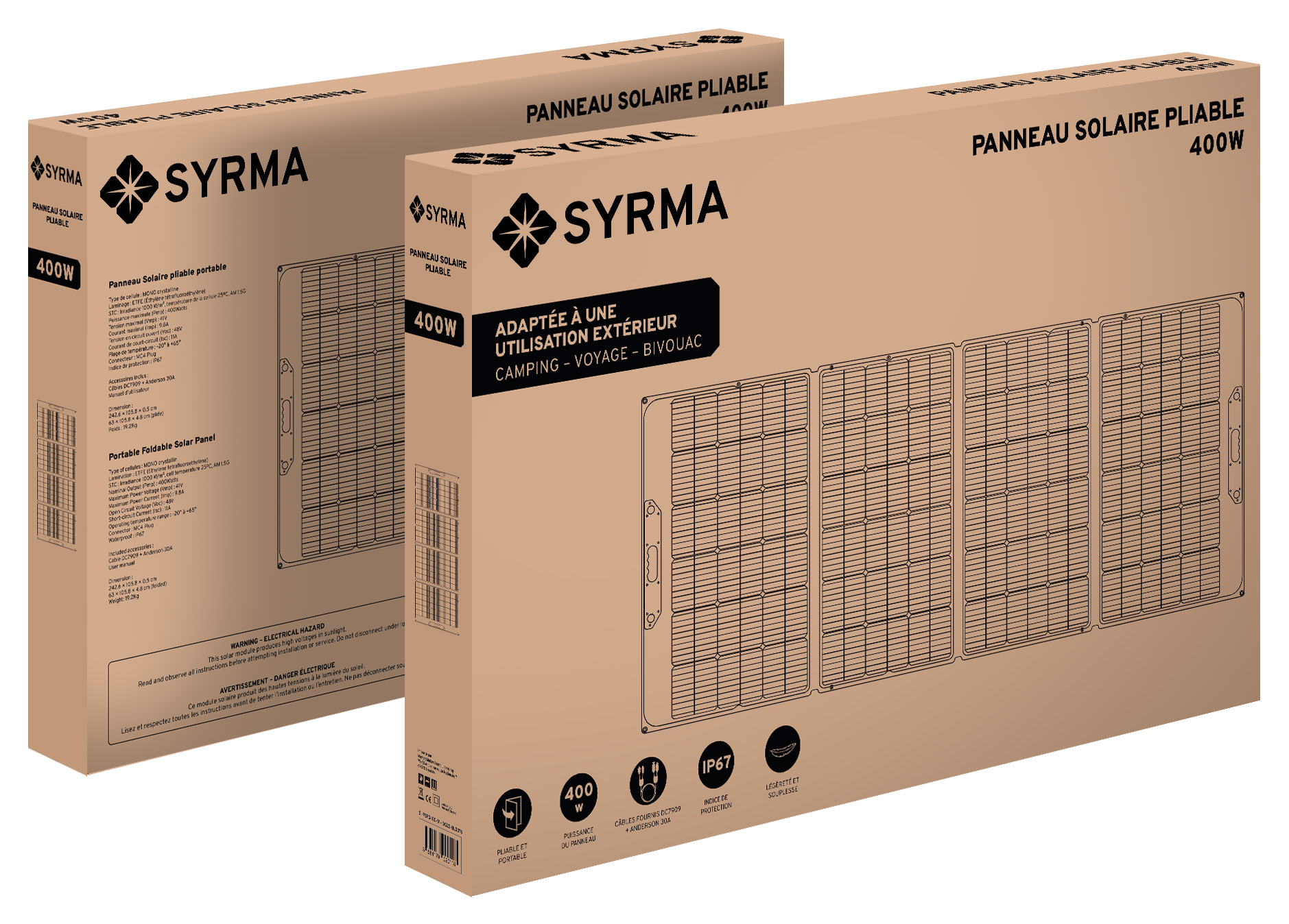 Découvrez l'innovation solaire avec notre panneau solaire pliable de 400W. Conçu pour offrir une solution énergétique portable et performante, notre panneau solaire SYRMA allie légèreté, souplesse et puissance pour répondre à tous vos besoins en extérieur, que ce soit lors de vos escapades camping ou de vos aventures en plein air.