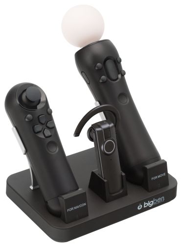 Permet de charger votre manette Playstation Move(TM), votre manette Navcon(TM) ainsi que votre oreillette officielle Bluetooth® simultanément. Fourni avec un adaptateur secteur Manettes non incluses.