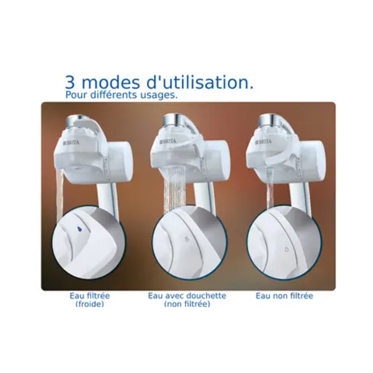 • Installation simple directement sur le robinet de cuisine • Capacité : 1 filtre = 600 L d’eau filtrée / 4 mois • Indicateur de changement de filtre calendaire • 3 modes d'utilisation : eau filtrée, eau non filtrée, eau non filtrée avec une douchette • 5 adaptateurs inclus • Ecologique : 1200 bouteilles plastiques de 1,5L évitées / an