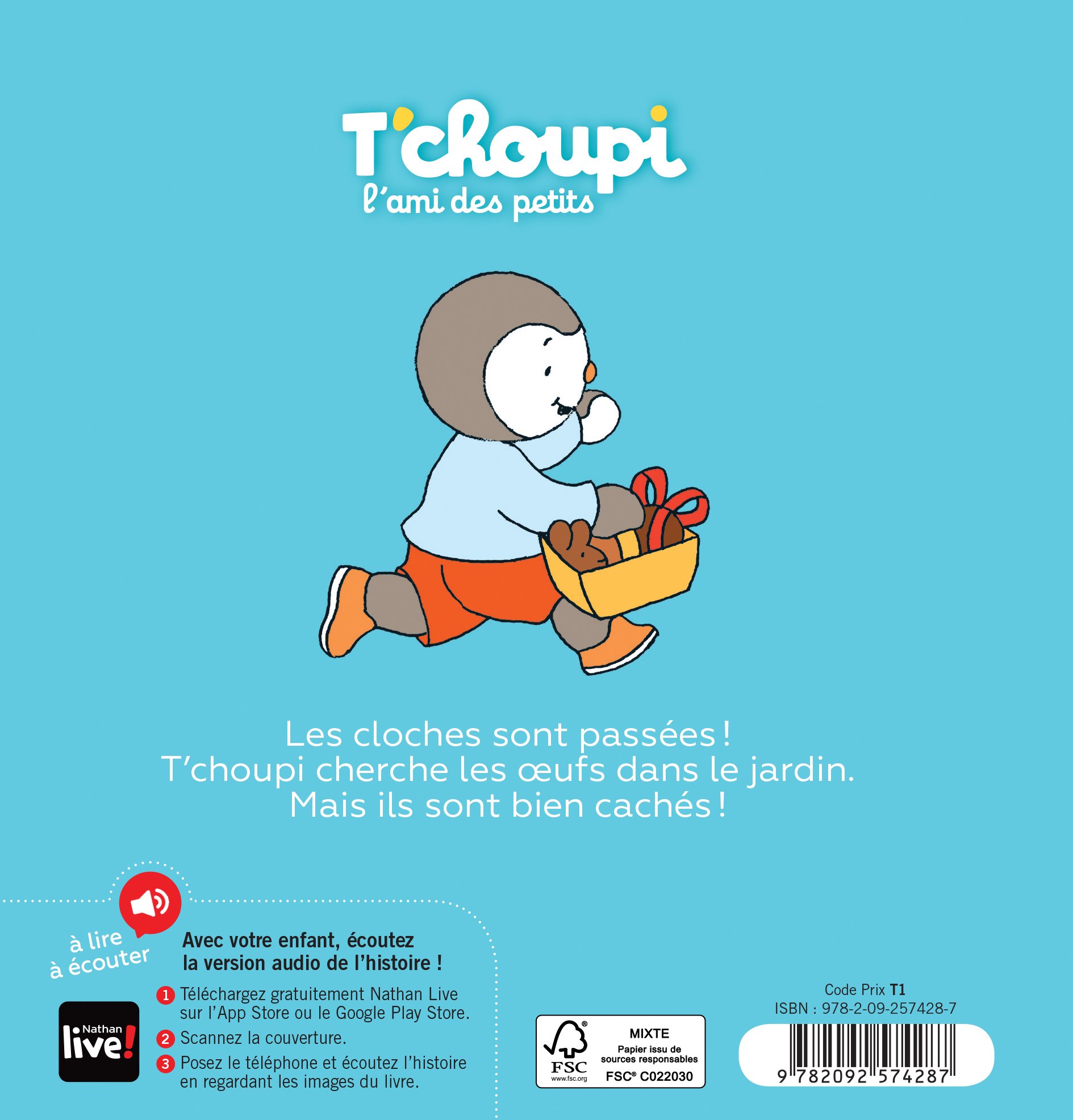 Tous les albums T'choupi sont maintenant accompagnés d'une version audio, accessible gratuitement en scannant la couverture avec l'application Nathan Live.
