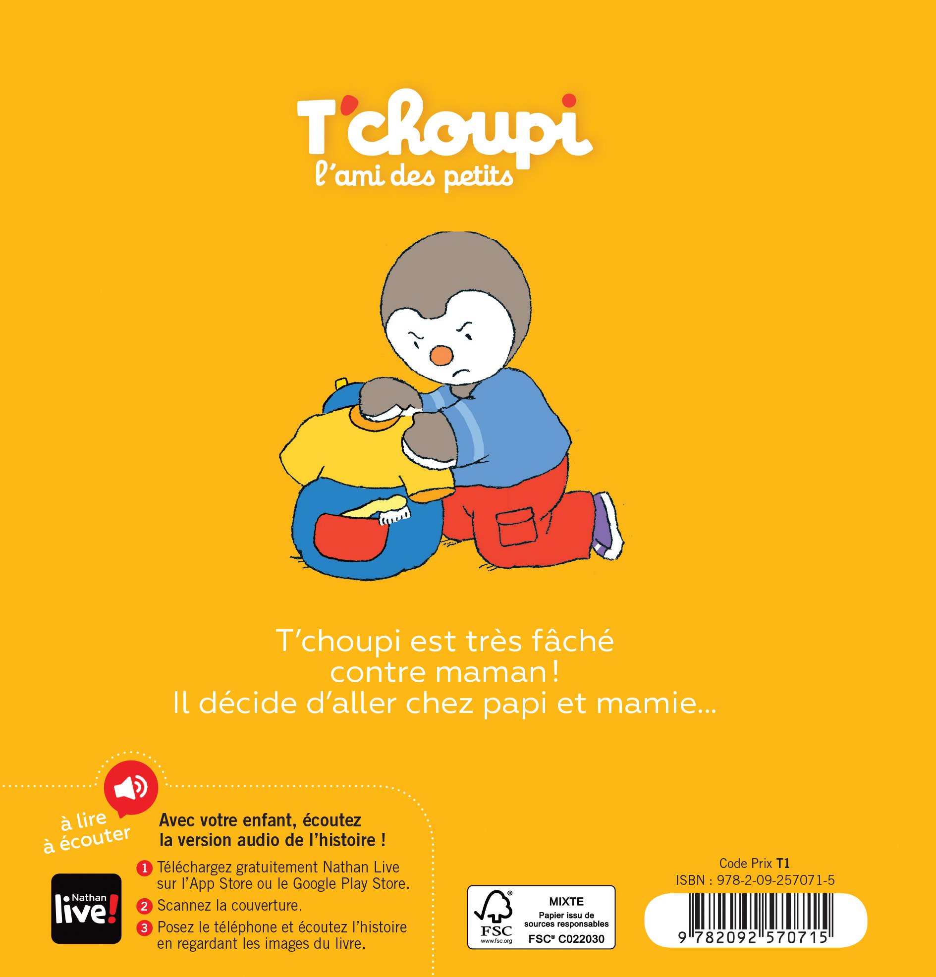 Résumé de cette histoire : T'choupi est très fâché contre maman ! Il décide d'aller chez papi et mamie...