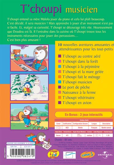 T'Choupi entend son ami Maloula jouer du piano et cela lui plaît beaucoup. C'est décidé, il sera musicien ! Mais apprendre à jouer d'un instrument n'est pas si facile...
