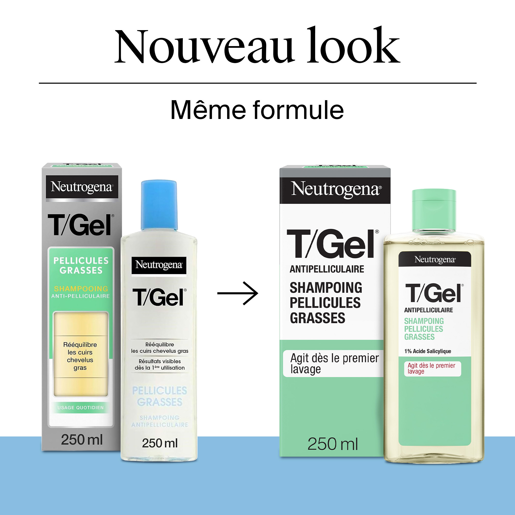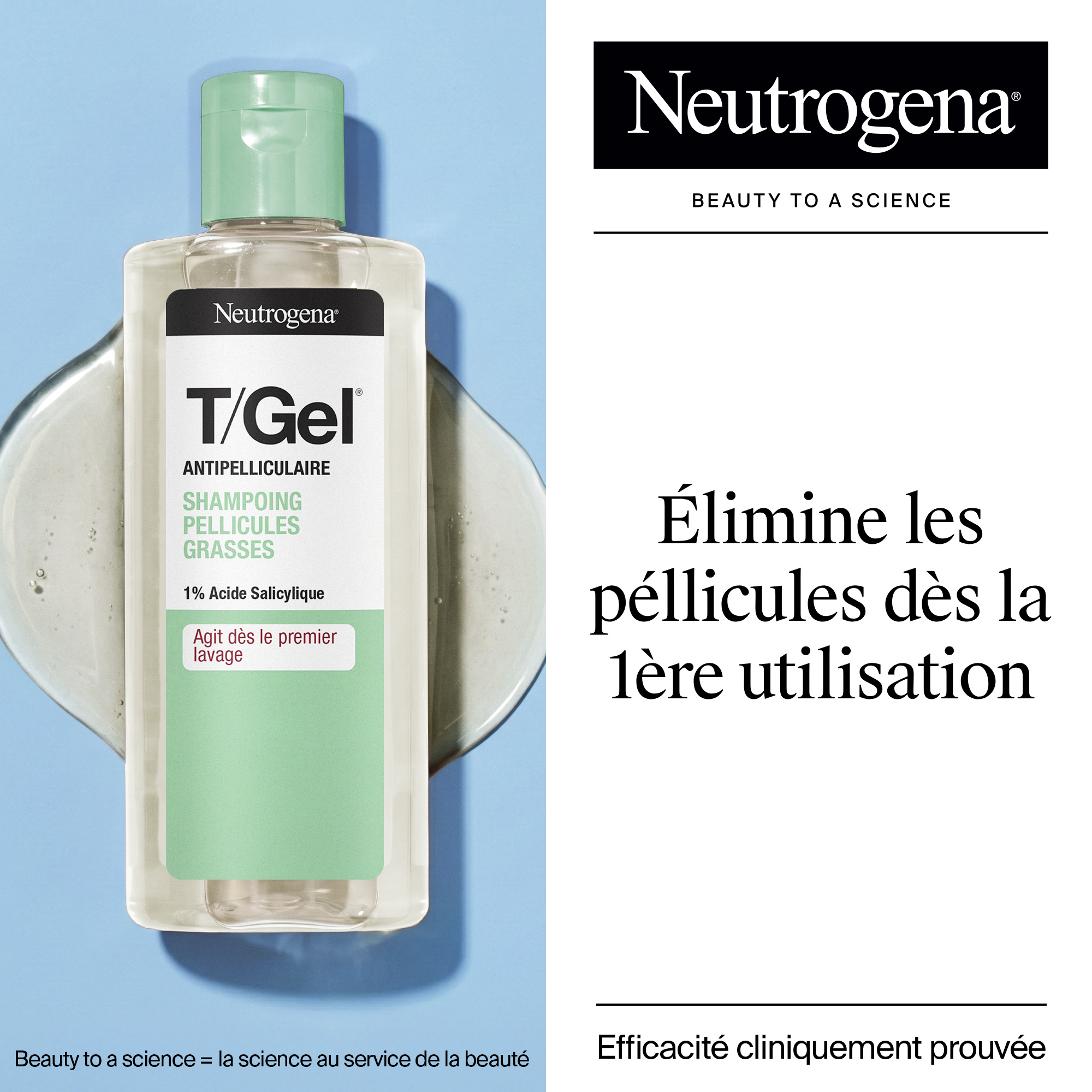 NEUTROGENA T/Gel Shampooing pellicules grasses Répare et nourrit Résultats visibles dès la première utilisation 250ml Dès la première utilisation, vos cheveux et votre cuir chevelu sont frais et propres. Ce shampooing anti-pelliculaire quotidien va rééquilibrer la sécrétion de sébum et va donc éliminer les pellicules. L'acide salicylique, et la piroctone olamine sont des puissant actifs purifiant qui vont vous aider à combattre les pellicules.