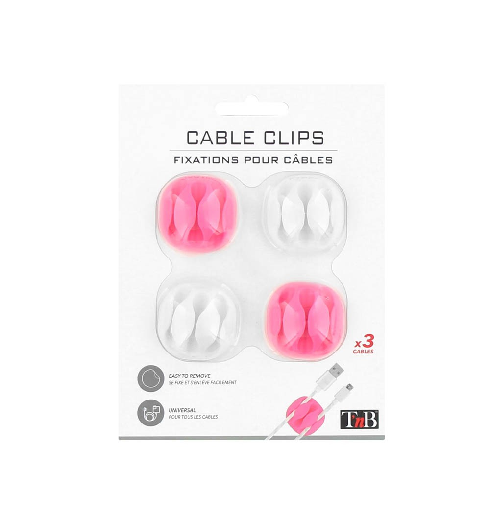 T'nB CLIP3MIX range-câbles Bureau Support de câbles Rose, Blanc 4 pièce(s)