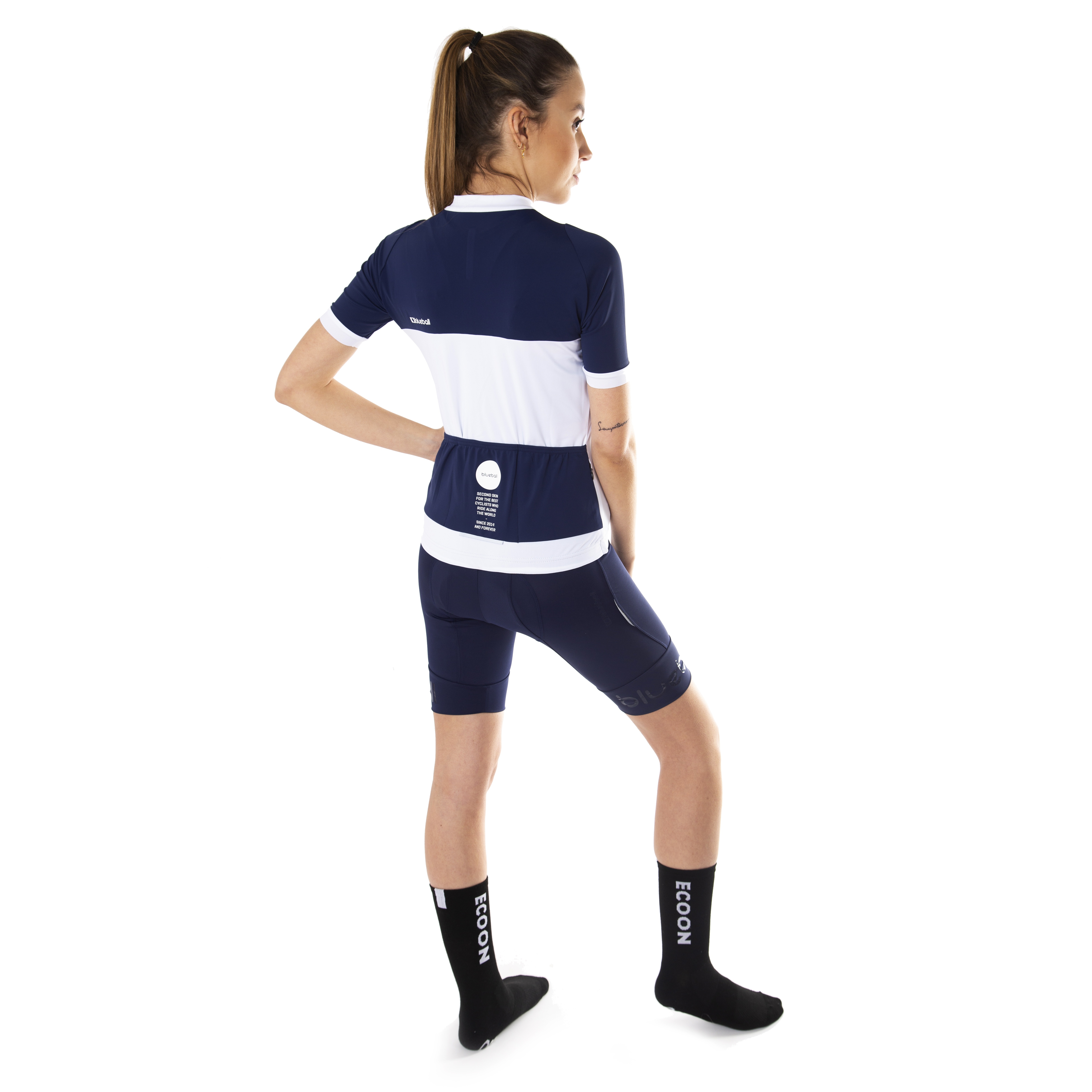 T-shirt de cyclisme pour femme à manches courtes de couleur bleu et blanc. Construit pour optimiser l’aérodynamisme et la compression musculaire qui se distingue par sa respirabilité ( 18.000 g/m2/24h y perméabilité 0,1 CFM) et près de la peau. Notre DeanSilk signature est de qualité supérieure douce et élastique dans le panneau avant. Les découpes de nos panneaux avant et arrière en tissu Adjust réduisent la résistance au vent et adhèrent au corps du cycliste. Les manches profilées offrent une coupe seconde peau, sans coupures ni coutures, avec une ceinture antidérapante pour aider à maintenir le maillot en place. Trois poches arrière élastiques facilement accessibles offrent un grand espace de rangement pour un téléphone, des pièces de rechange et de la nourriture.