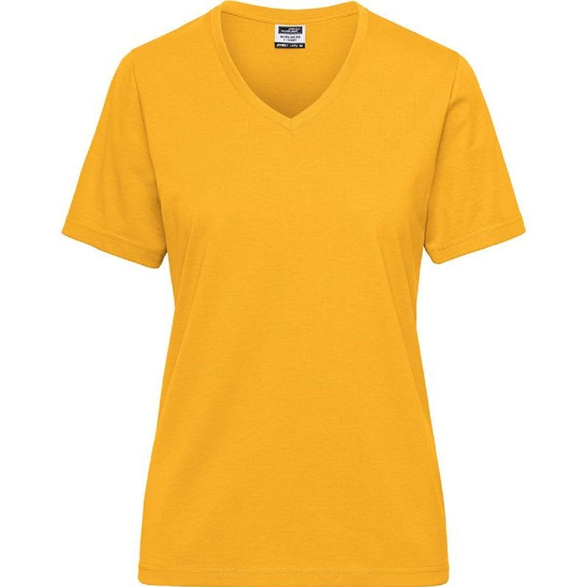 T-shirt de travail Bio col V - Femme - JN1807 - jaune d'or