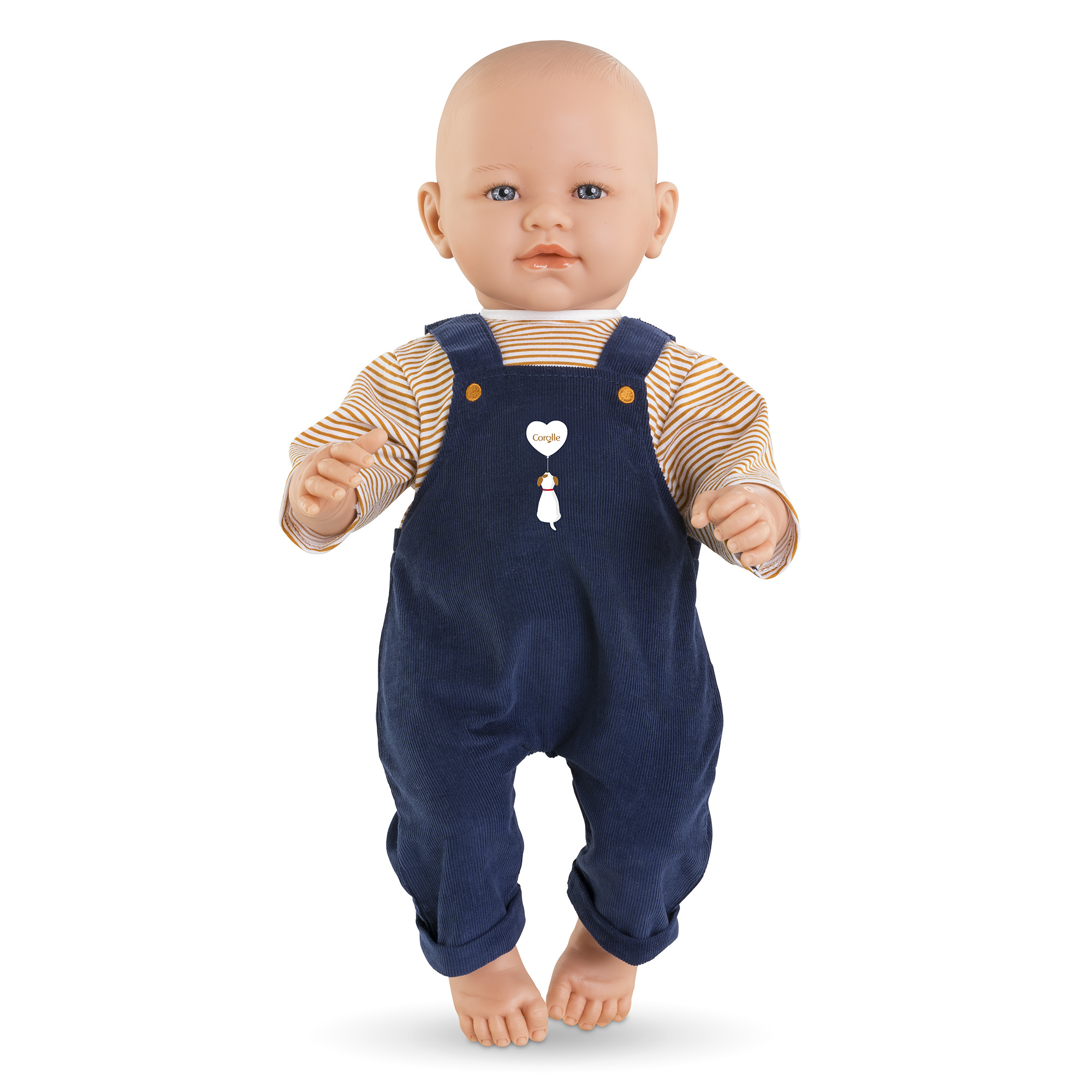 t-shirt et salopette marine pour mon grand poupon corolle : les poupons corolle sont à la pointe de la mode ! ils possèdent des vêtements et des accessoires similaires à ceux utilisés pour les vrais bébés.