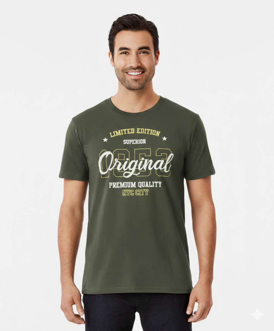 T-shirt manches courtes fantaisie homme kaki TISSAIA BASICS