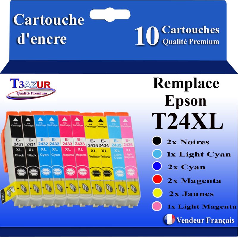 Libellé T3AZUR- 10x Cartouches Compatibles avec Epson 24XL 24 XL remplace Epson Expression Photo XP-850 XP-750 XP-950 XP-55 XP-860 XP-760 XP-960 XP-970