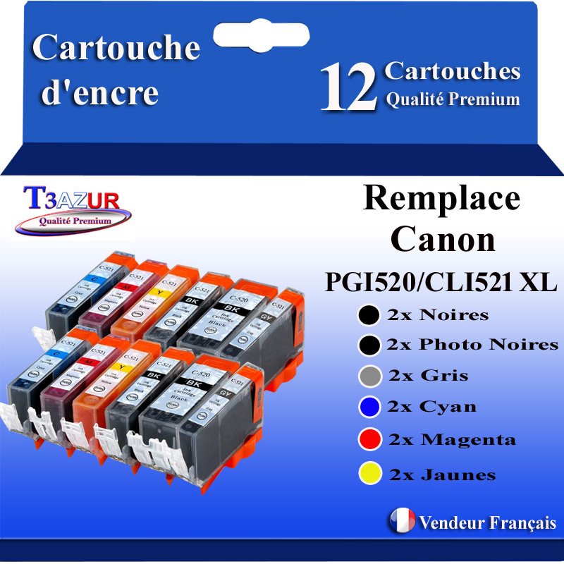 | Libellé | T3AZUR - 12x Cartouches compatibles avec Canon CLI521 CLI-521 XL pour Canon Pixma MP980 MP990 |