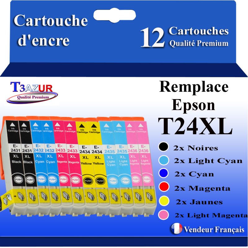 Libellé T3AZUR- 12x Cartouches Compatibles avec Epson T2431 T2432 T2433 T2434 T2435 T2436 T24XL