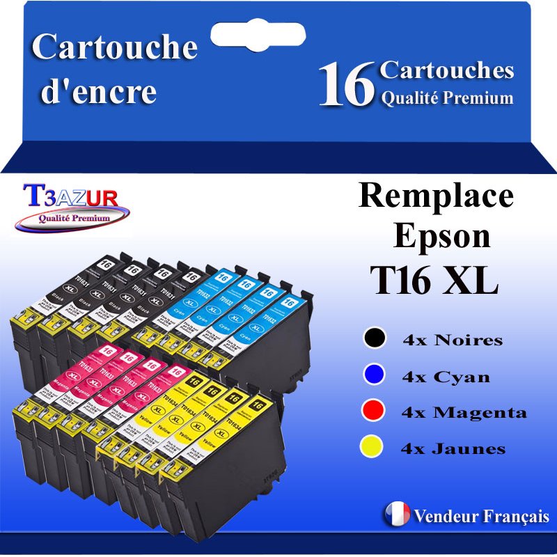| Libellé | T3AZUR- 16x Cartouches Compatibles avec Epson 16XL 16 XL remplace Epson Workforce WF-2750 WF-2760 WF-2660 WF-2650 WF-2630 WF-2540 WF-2530 WF-2510 WF- |