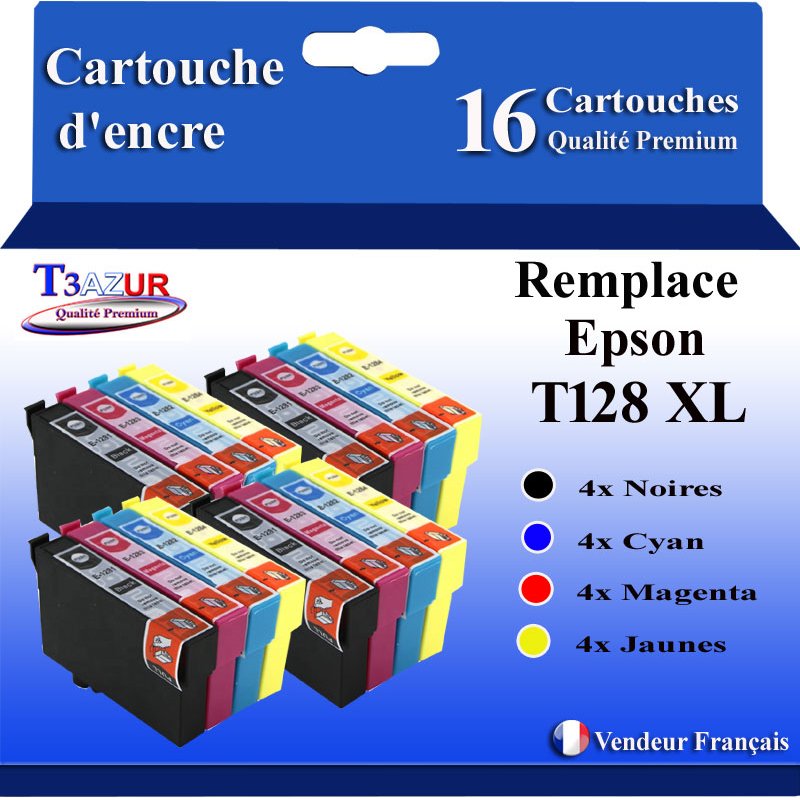 Libellé T3AZUR- 16x Cartouches Compatibles avec Epson T1281 T1282 T1282 T1284 T128 XL