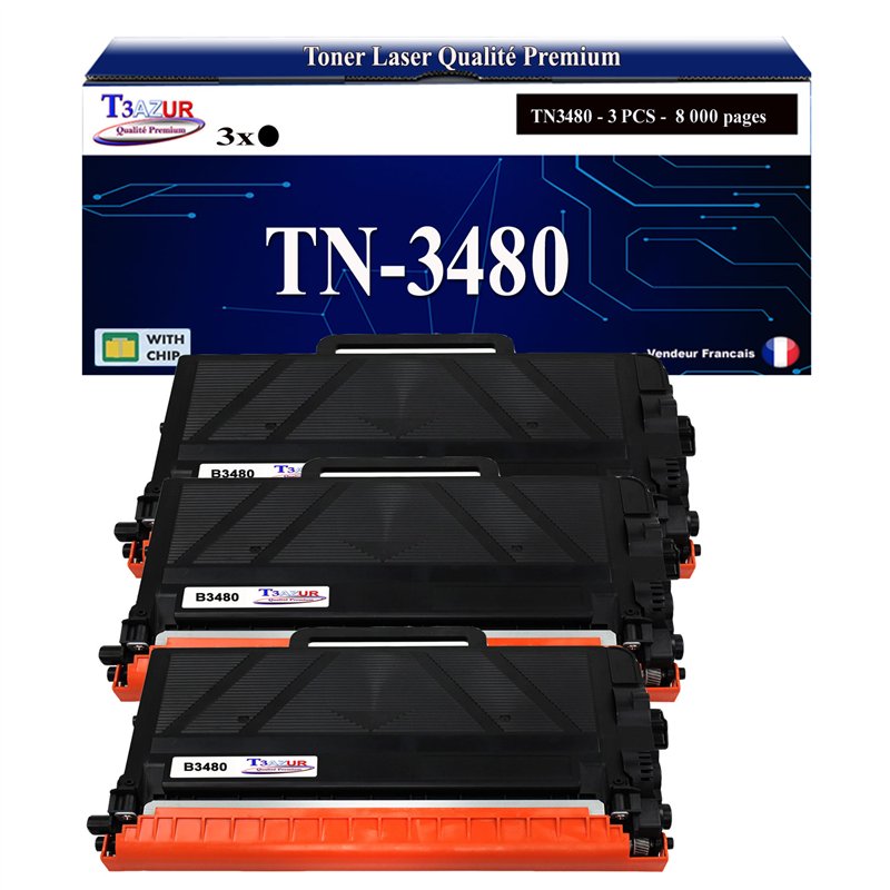 Libellé T3AZUR- 3x Toners compatibles avec Brother TN3480, TN3430 pour Brother DCP-L5500DN, DCP-L6600DW- 8 000 pages