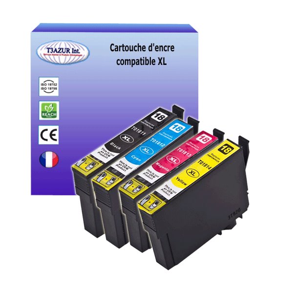 | Libellé | T3AZUR- 4x Cartouches Compatibles avec Epson 18XL 18 XL remplace Expression Home XP205 XP215 XP305 XP312 XP315 XP322 XP325 XP405 XP412 XP415 XP422 XP |