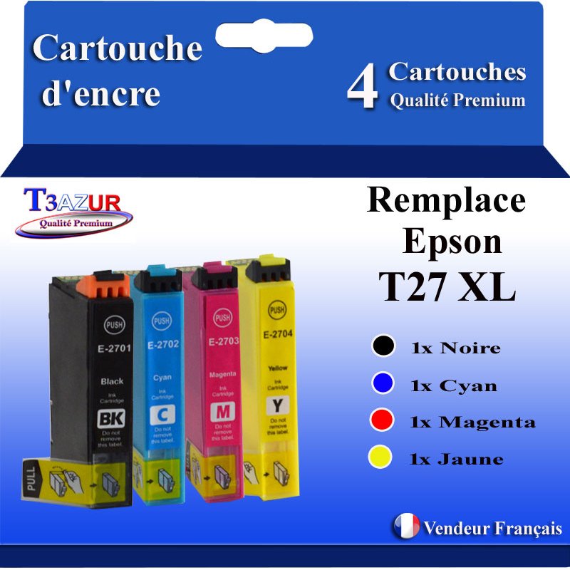| Libellé | T3AZUR - 4x Cartouches Compatibles avec Epson WorkForce WF-7710DWF WF-7715DWF WF-7720DTWF remplace Epson T27XL |