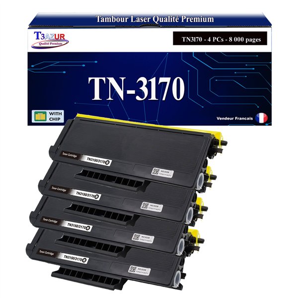 | Libellé | T3AZUR - 4x Toners compatibles avec Brother TN3170 pour Brother MFC-8460, MFC-8460N, MFC-8860DN, MFC-8870DW Noir - 8 000 pages |