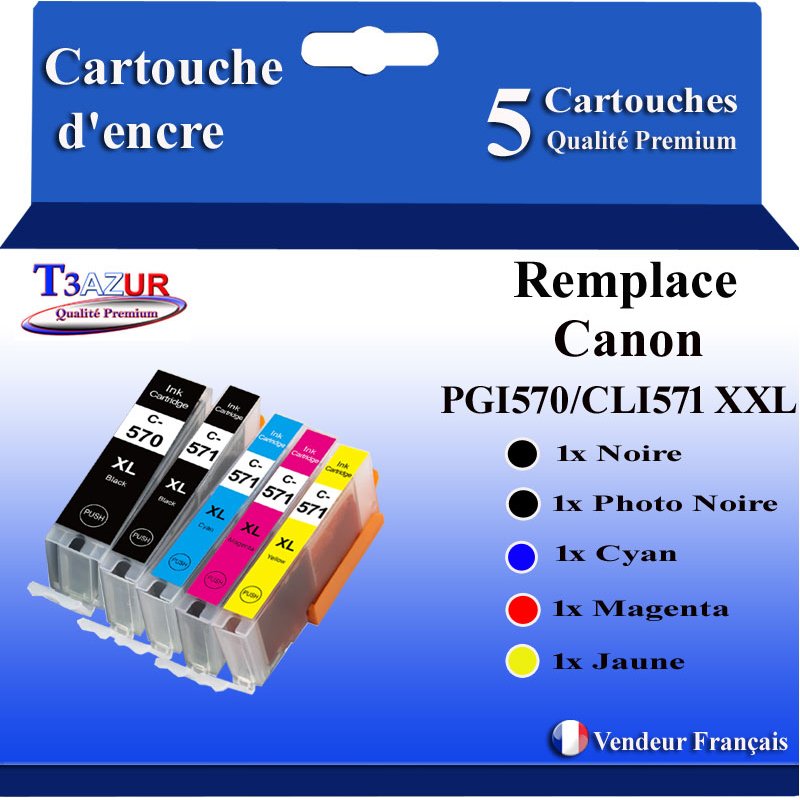 Libellé T3AZUR - 5x Cartouches compatibles avec Canon PGI-570XL CLI-571 XL pour Canon Pixma MG5750 TS5050 MG5753 MG6850 MG6852 TS5055 TS6050