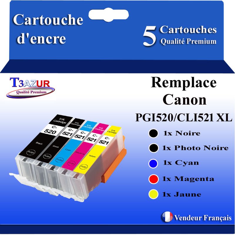 Libellé T3AZUR - 5x Cartouches compatibles avec Canon PGI520 CLI-521 XL pour Canon Pixma iP3600 iP4600 iP4700 MP540 MP550 MP560