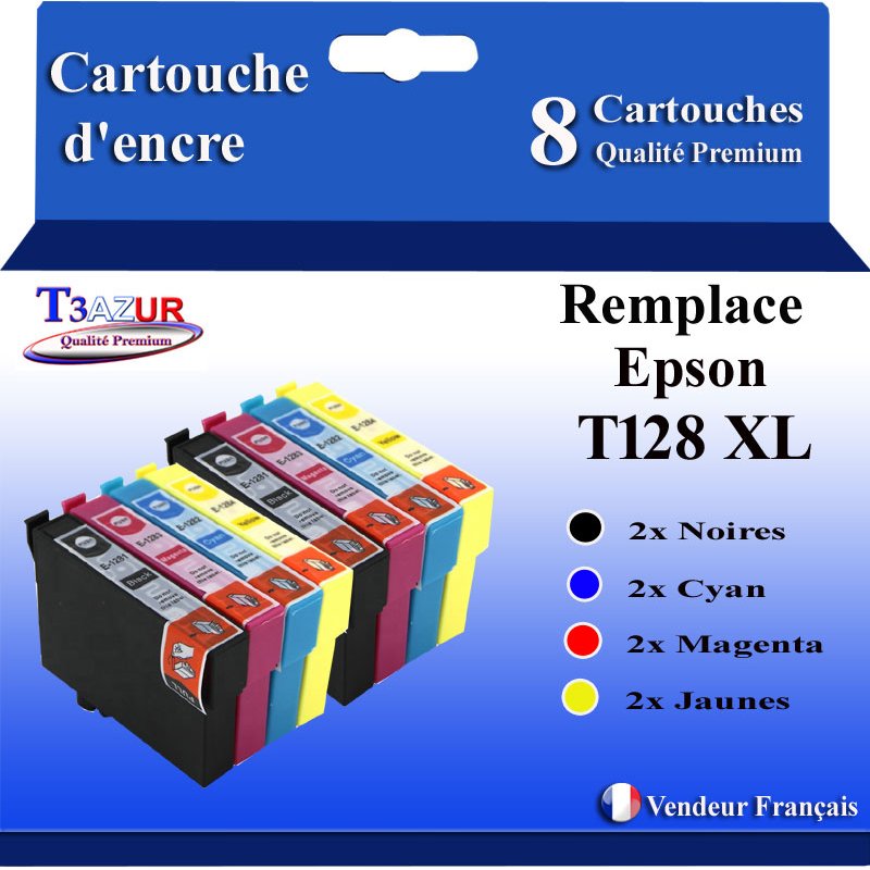 | Libellé | T3AZUR- 8x Cartouches Compatibles avec Epson T1281 T1282 T1282 T1284 T128 XL |