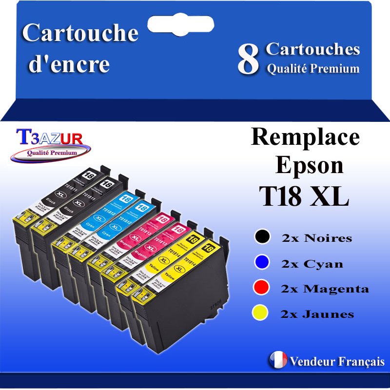 Libellé T3AZUR- 8x Cartouches Compatibles avec Epson T1811 T1812 T1813 T1814 T18XL