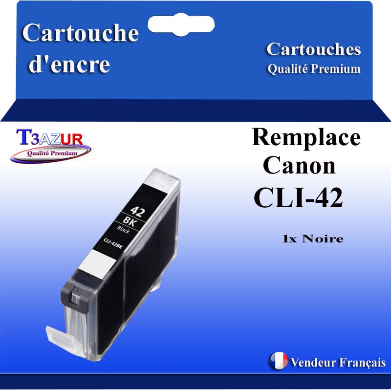 Remplacent les cartouches d'encre Canon CLI42 (6384B001) Noire- Volume: 13 ml avec un rendement de 5% , repondent à toutes les normes européennes ISO 9001/14001, STMC, CE, ROHS - 100% Compatible - Encre de haute qualité qui garantie une excellence qualité d'impression - Marque T3AZUR