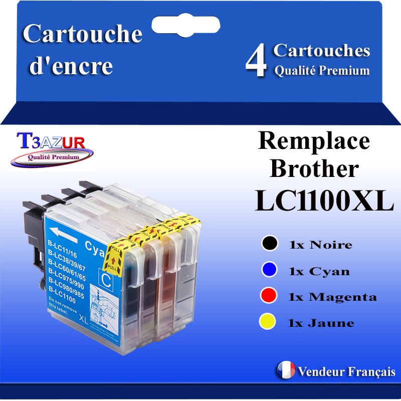 Libellé T3AZUR- Lot de 4 Cartouches compatibles avec Brother LC1100 XL pour Brother MFC795CW, MFC930CDN, MFC935CDN, MFC935CDWN