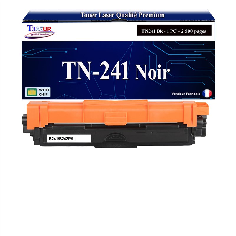 Remplacent les Toners Brother TN-241BK/TN-242BK Noire - Capacité: 2 500 pages avec un rendement de 5% , repondent à toutes les normes européennes ISO 9001/14001, STMC, CE, ROHS - 100% Compatible - Encre de haute qualité qui garantie une excellence qualité d'impression - Marque T3AZUR