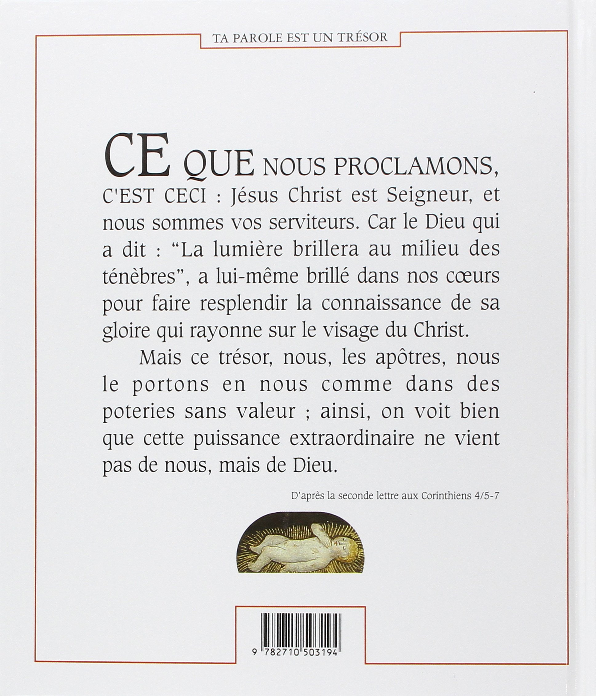 Pierre angulaire du parcours, ce document biblique présente, pour les années centrales de la catéchèse, les principaux textes de l'Ancien et du Nouveau Testament.