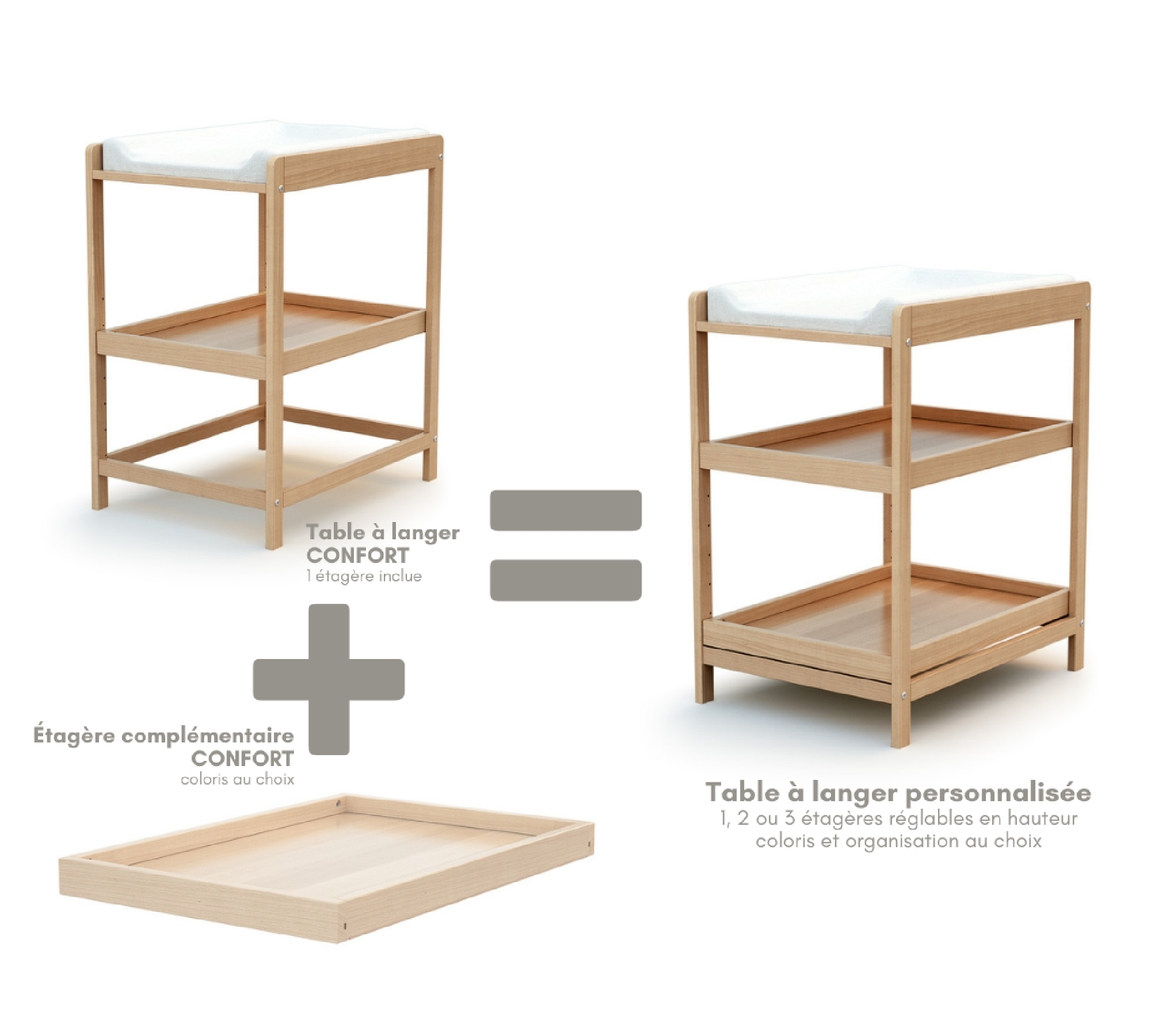 Fabriqué avec une structure en hêtre massif, cette table à langer est solide et durable.
