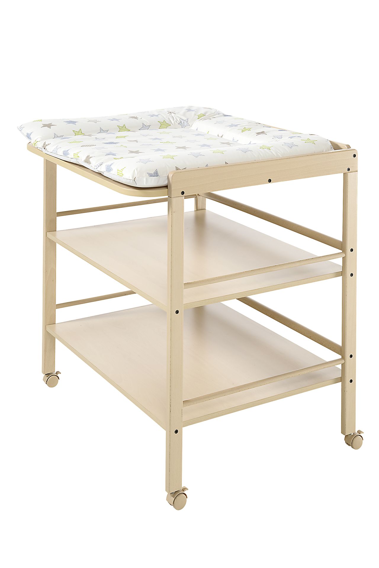 Peu encombrante, elle offre toutefois un vaste espace de rangement, mobile et stable à la fois : la table à langer Clarissa, bien pensée, convainc sur toute la ligne. Parfaite dans toutes les pièces où l’on manque de place, par exemple dans la salle de bains ; convient également pour les coins à langer des hôtels, cafés ou restaurants. La table à langer Clarissa en détail : Si la surface de change est étroite, elle offre malgré tout une place suffisante pour changer votre bébé. Plusieurs modèles de matelas à langer adaptés, lavables pour une hygiène parfaite, sont disponibles séparément (référence article 5832). Sous la surface de change, qui dépasse légèrement à l’avant, se trouvent deux vastes espaces de rangement entourés de barres pour les produits de soins, vêtements ou sac à langer. Avec ses 4 roulettes équipées d’un frein, cette table à langer est stable et mobile à la fois et vous pouvez facilement la déplacer là où vous en avez besoin. Tous les angles et bords sont arrondis pour éviter les blessures. Hauteur de travail ménageant le dos : 86 cm. Fabriquée en Allemagne. Les tablettes sont en aggloméré, la structure en hêtre massif. Disponible en plusieurs couleurs : naturel, blanc et marron – convient pour différents styles d’intérieur. Tous les films plastiques, peintures et tissus sont résistants à la salive et à la sueur, non toxiques et répondent à des exigences élevées qui s’appliquent également à la sécurité des jouets. L’article est livré démonté. Le montage est rapide et facile. Couleur : naturel. Matériau : bois. Charge max : 11 kg. Dimension en cm (L x l x H) : 71.7 x 56.3 x 91.5. Livraison en 3 à 5 jours ouvrés.