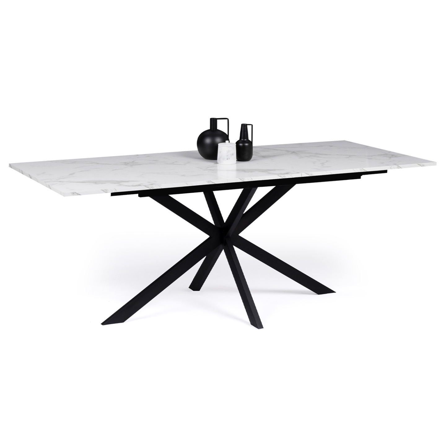 Table à manger ALASKA effet marbre blanc et pied araignée métal pour 6-10 personnes