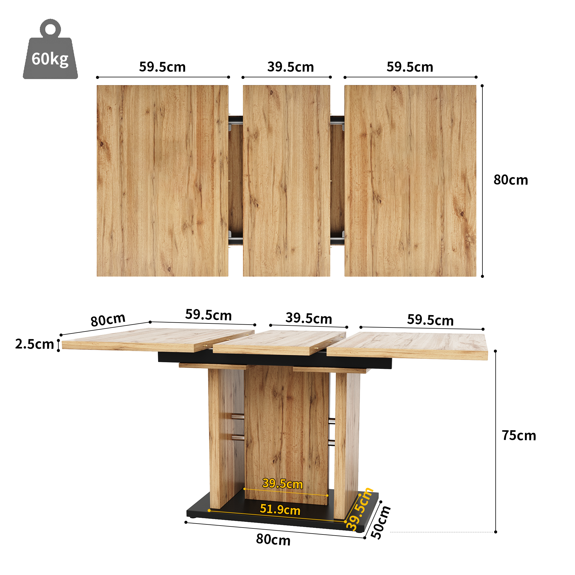 | Libellé | Table à manger extensible rectangle, couleur naturelle, 6-8 personnes 119-158.5cm |