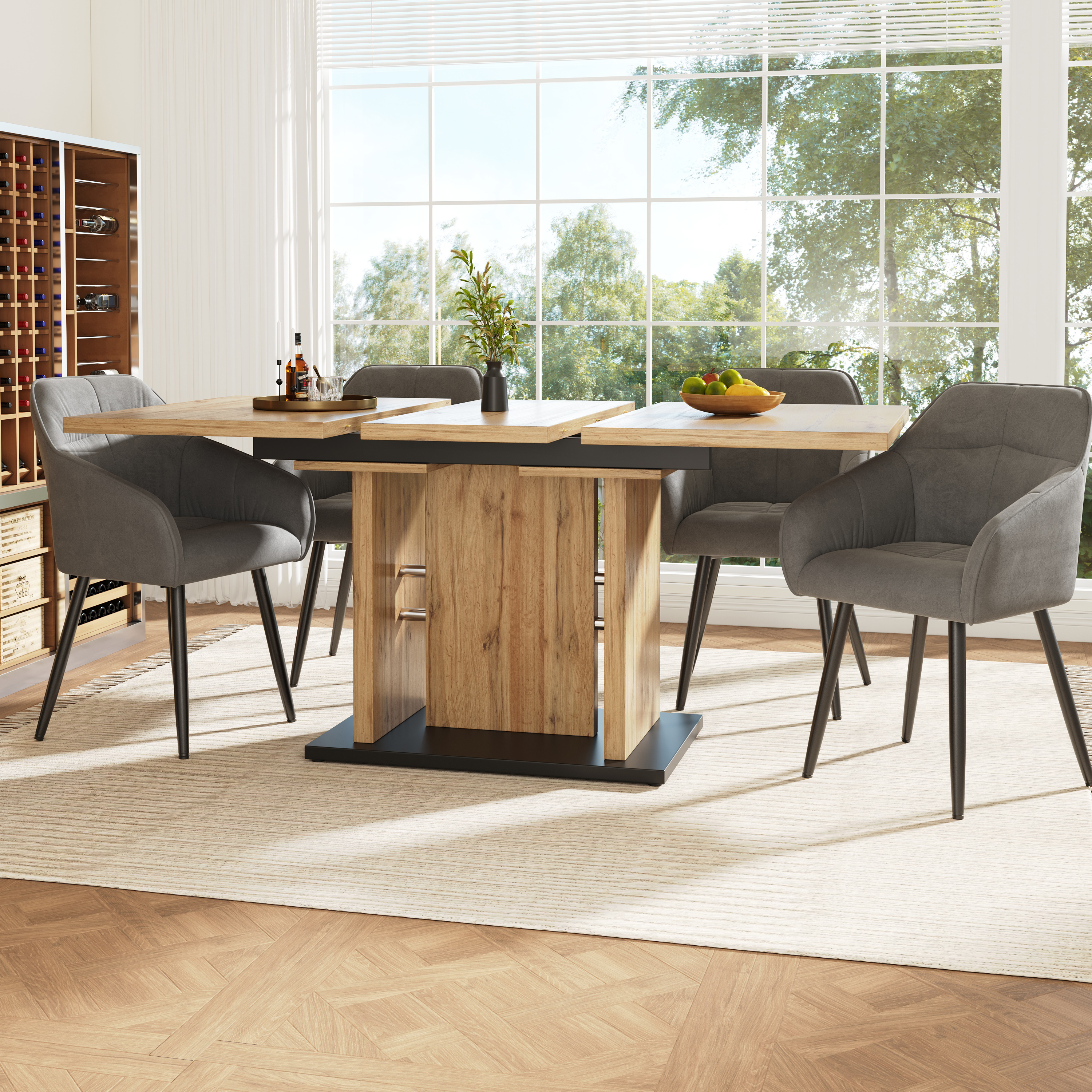 1. Table extensible pratique et spacieuse – Ce modèle offre une surface initiale de 119 x 80 cm (L x l), extensible jusqu'à 158,5 cm grâce à son mécanisme télescopique. Idéal pour accueillir confortablement 6 à 8 personnes, il s'adapte aux repas familiaux, aux dîners entre amis ou même à une utilisation comme bureau temporaire. Sa polyvalence en fait un meuble indispensable.