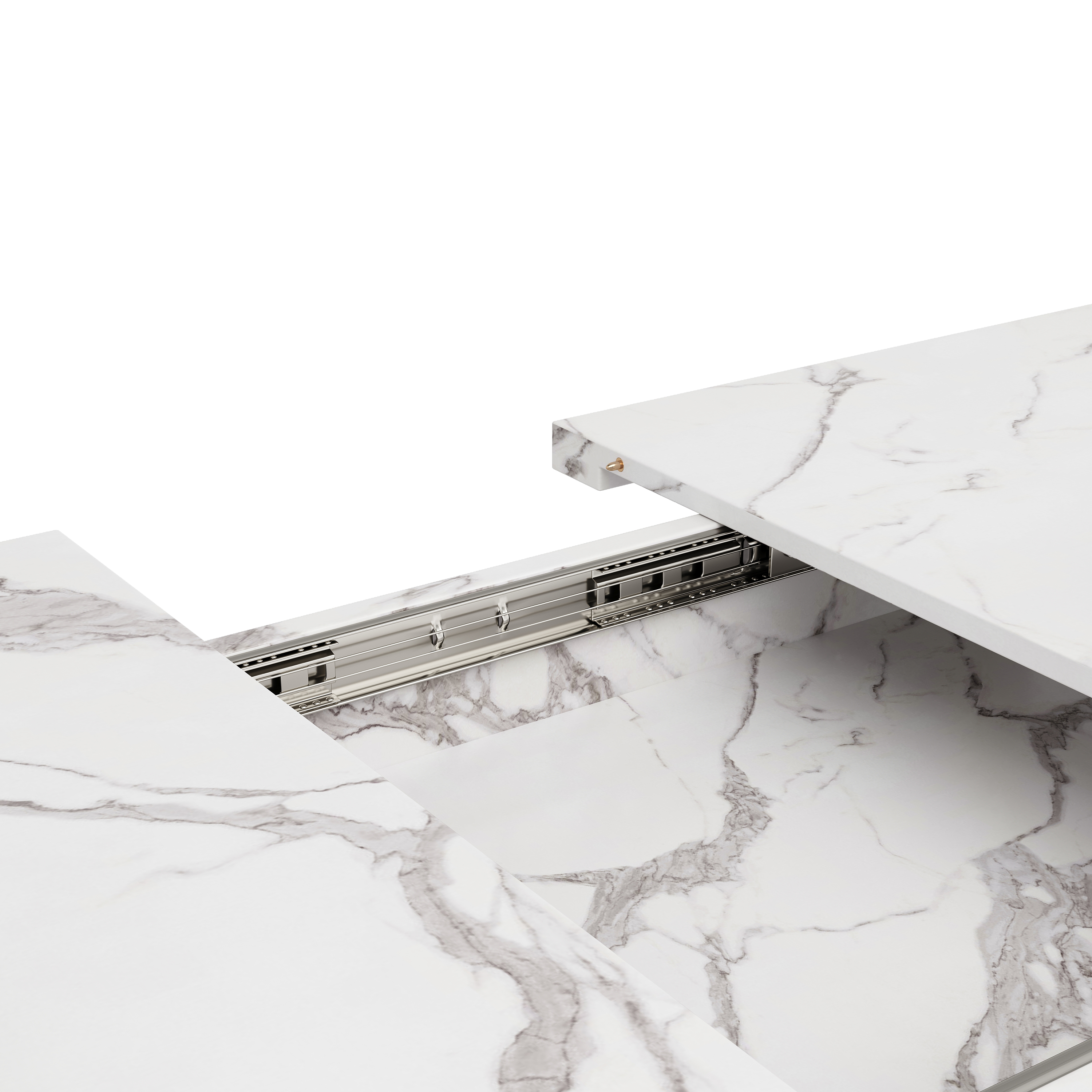 Table à Manger Extensible Rectangle Style Marbre Blanc, 4-6 Personnes 120-160cm