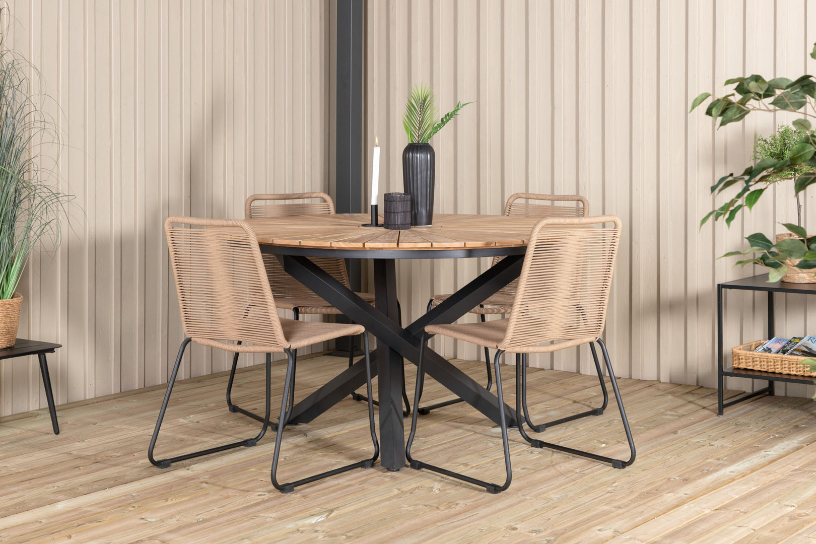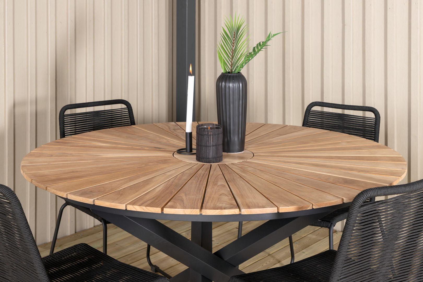 Table de jardin Mexico Ø140 cm noire, naturel est une table de jardin de couleur noire qui apporte à la fois style et fonctionnalité à votre intérieur. Table de jardin Mexico Ø140 cm noire, naturel. Distance entre les pieds de la table - Côté long : 125 cm. Distance entre les pieds de la table - côté court : 125 cm. Ce produit est créé avec un souci du détail, ce qui garantit à la fois un attrait esthétique et une grande durabilité. Il est conçu dans un souci à la fois de fonctionnalité et de style, ce qui en fait le choix parfait pour n’importe quelle pièce de votre maison. Les matériaux utilisés sont de haute qualité, ce qui confère au produit une longue durée de vie et lui permet de résister à une utilisation quotidienne. Que ce soit pour le rangement ou comme ajout décoratif, ce produit rehaussera votre décor et apportera plus de confort et d'élégance à votre maison.