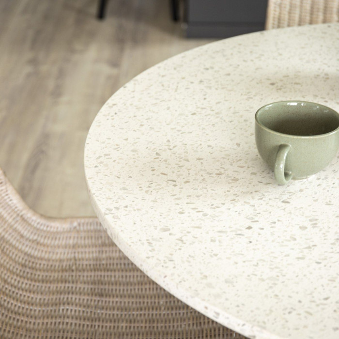 La table à manger Razzia Ø106cm terrazzo blanc est une table à manger de couleur qui apporte à la fois style et fonctionnalité à votre intérieur. Table à manger Razzia Ø106cm terrazzo blanc. Ce produit est créé avec un souci du détail, ce qui garantit à la fois un attrait esthétique et une grande durabilité. Il est conçu dans un souci à la fois de fonctionnalité et de style, ce qui en fait le choix parfait pour n’importe quelle pièce de votre maison. Les matériaux utilisés sont de haute qualité, ce qui confère au produit une longue durée de vie et lui permet de résister à une utilisation quotidienne. Que ce soit pour le rangement ou comme ajout décoratif, ce produit rehaussera votre décor et apportera plus de confort et d'élégance à votre maison.