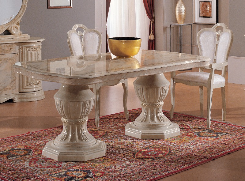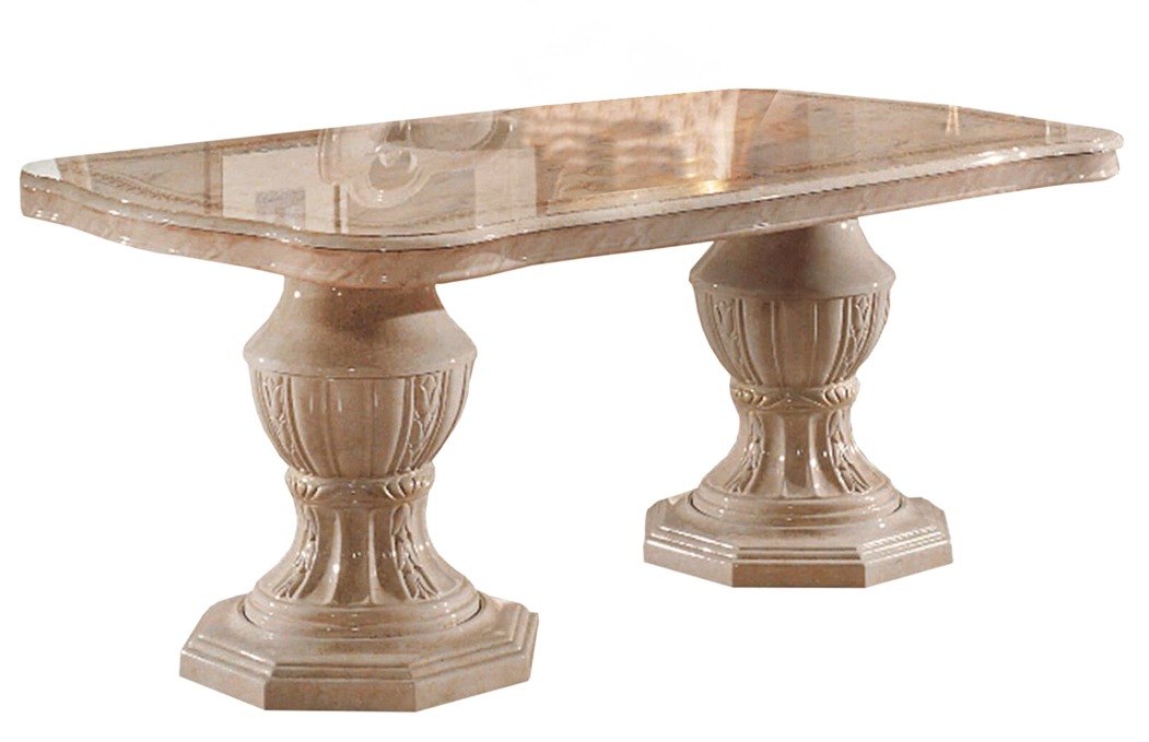 | Libellé | Table à manger rectangulaire extensible bois vernis laqué brillant beige et onyx effet marbré Lesly 185 à 230cm |