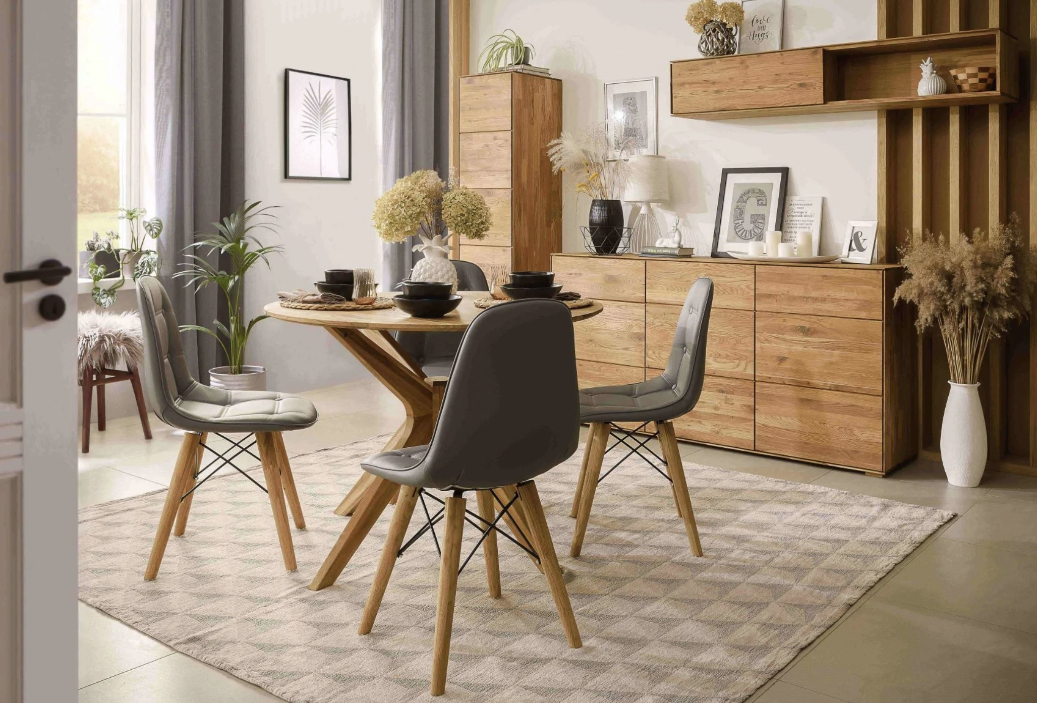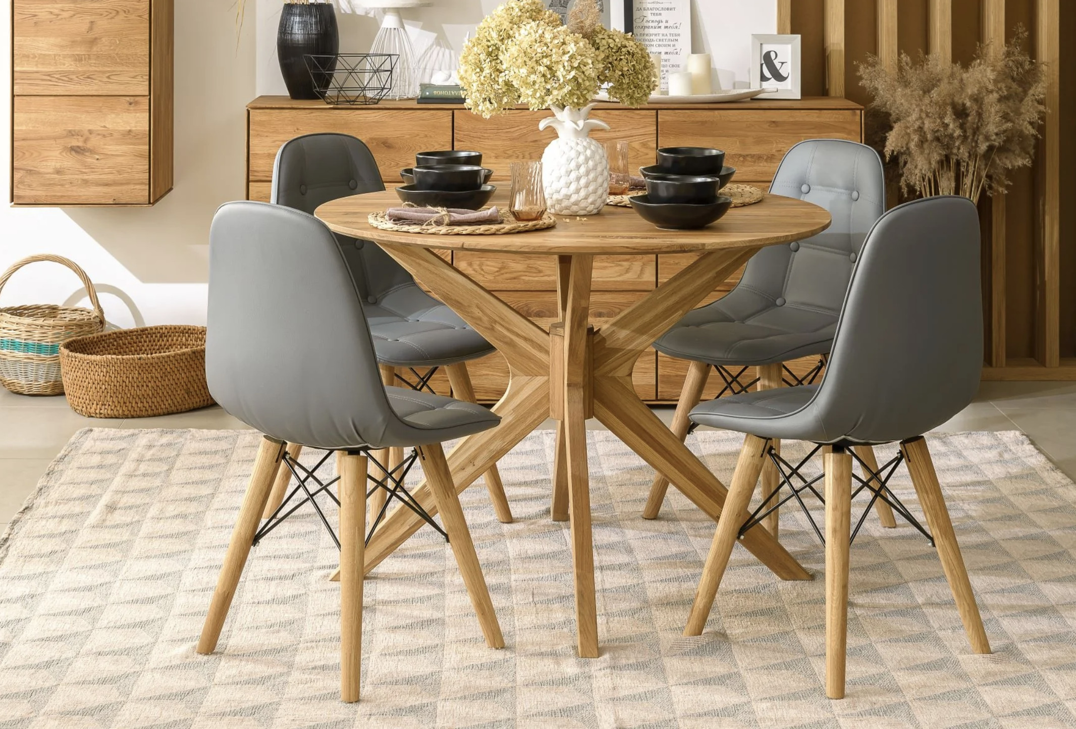 Table à manger ronde 105cm en bois de chêne massif Rodak