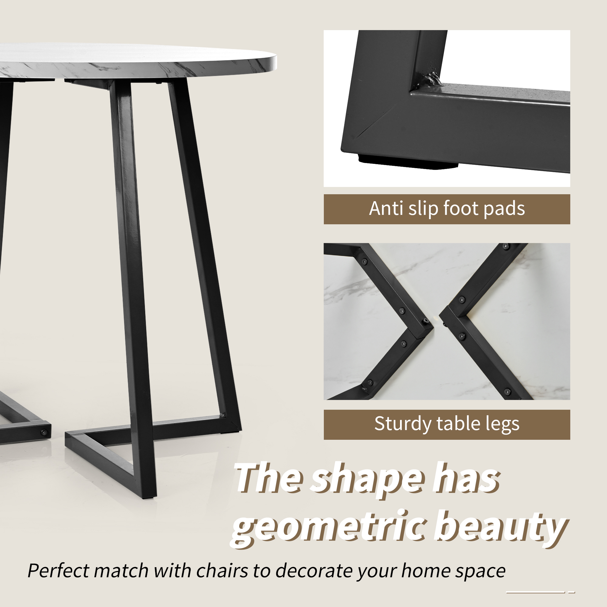| Libellé | Table à manger ronde blanc et noir 80cm, effet marbre – pour salle à manger ou salon |