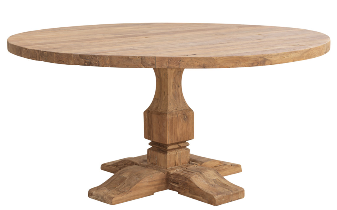 Table à manger ronde en bois massif naturel de teck Vikale 160cm