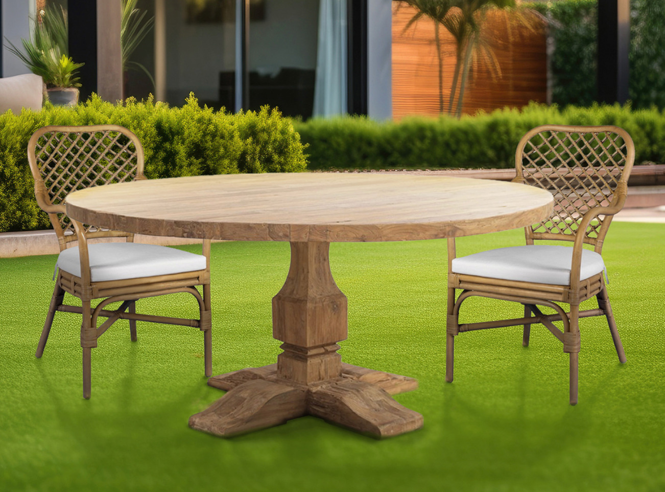 | Libellé | Table à manger ronde en bois massif naturel de teck Vikale 160cm |