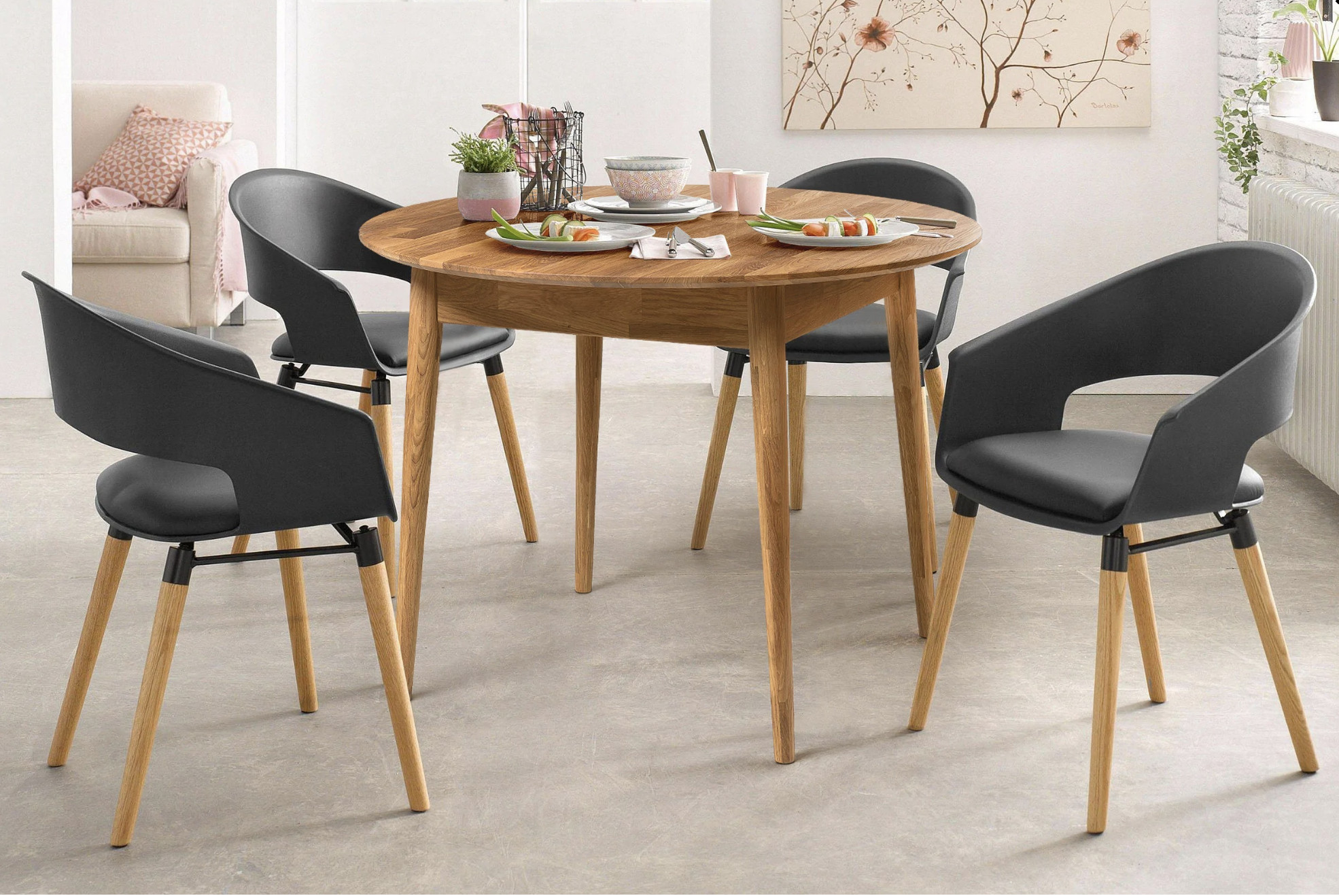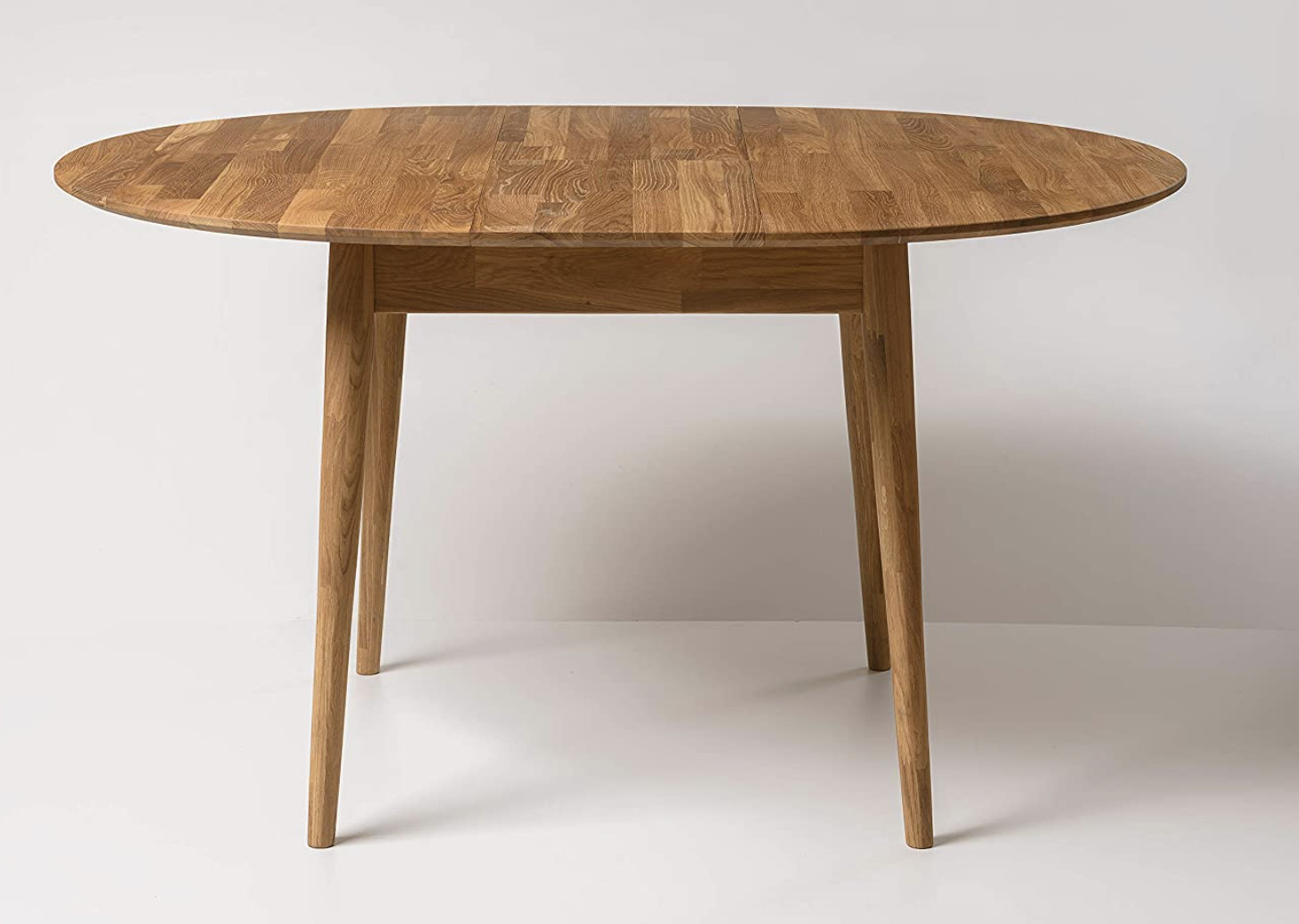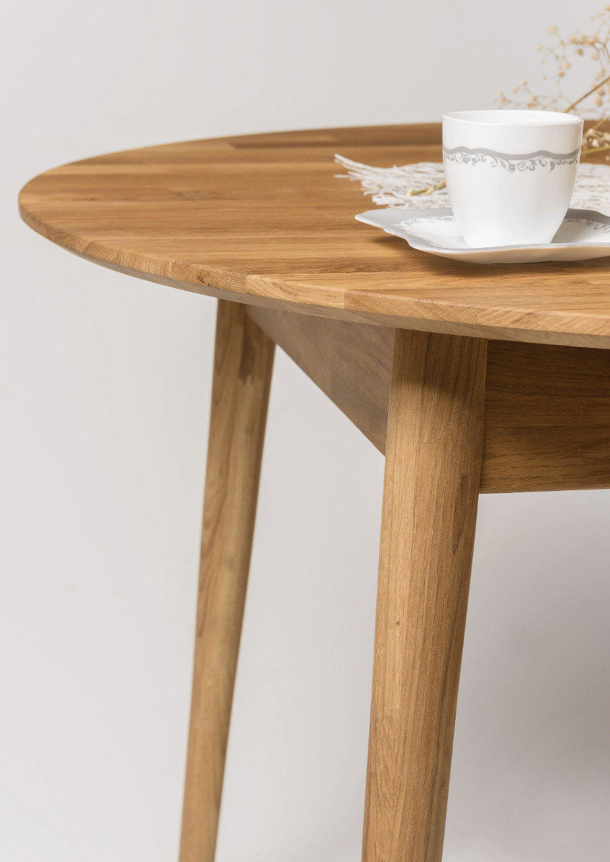 Table à manger ronde extensible 93 à 123cm en bois de chêne massif Kundy